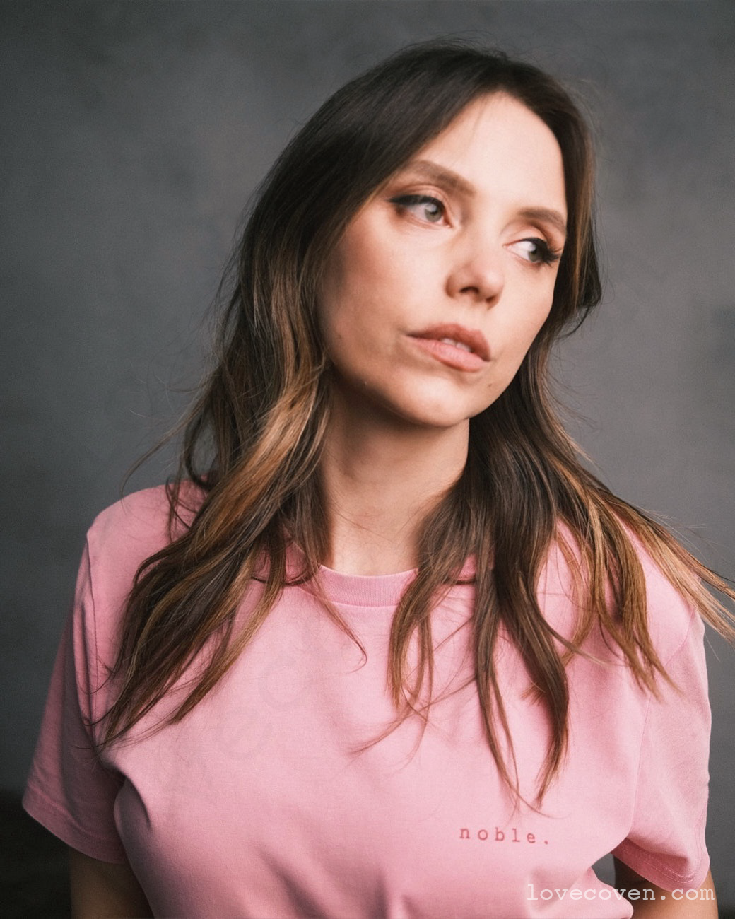 A vintage-wash tee with quiet power in a vintage pink. “noble.” on the front — minimal, deliberate.